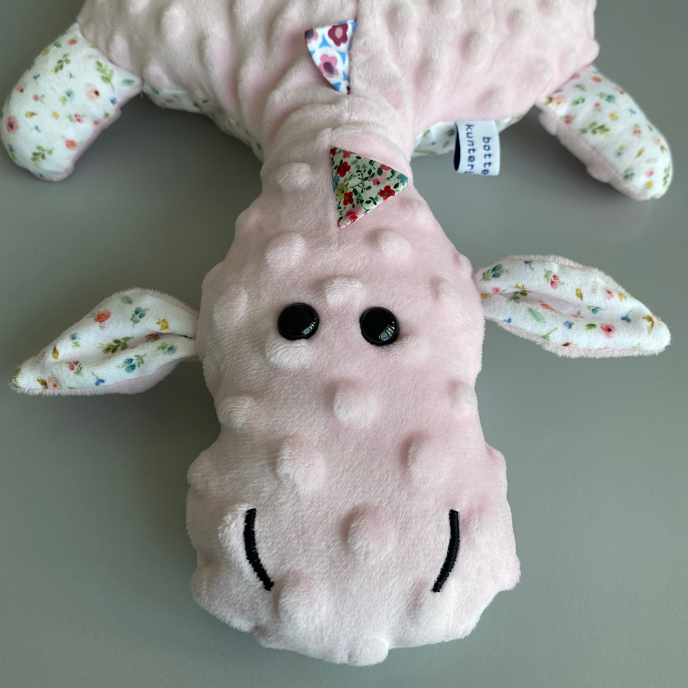 Tolles Schmusetuch und Nuggihalter. Kunterbunt regt es zum Fühlen und Tasten ein. Der Drache wird zum Begleiter und tröstet in der Not. Er bewacht deinen Liebling in der Nacht. Sorgfältig gefertigt aus hochwertigen Materialien.